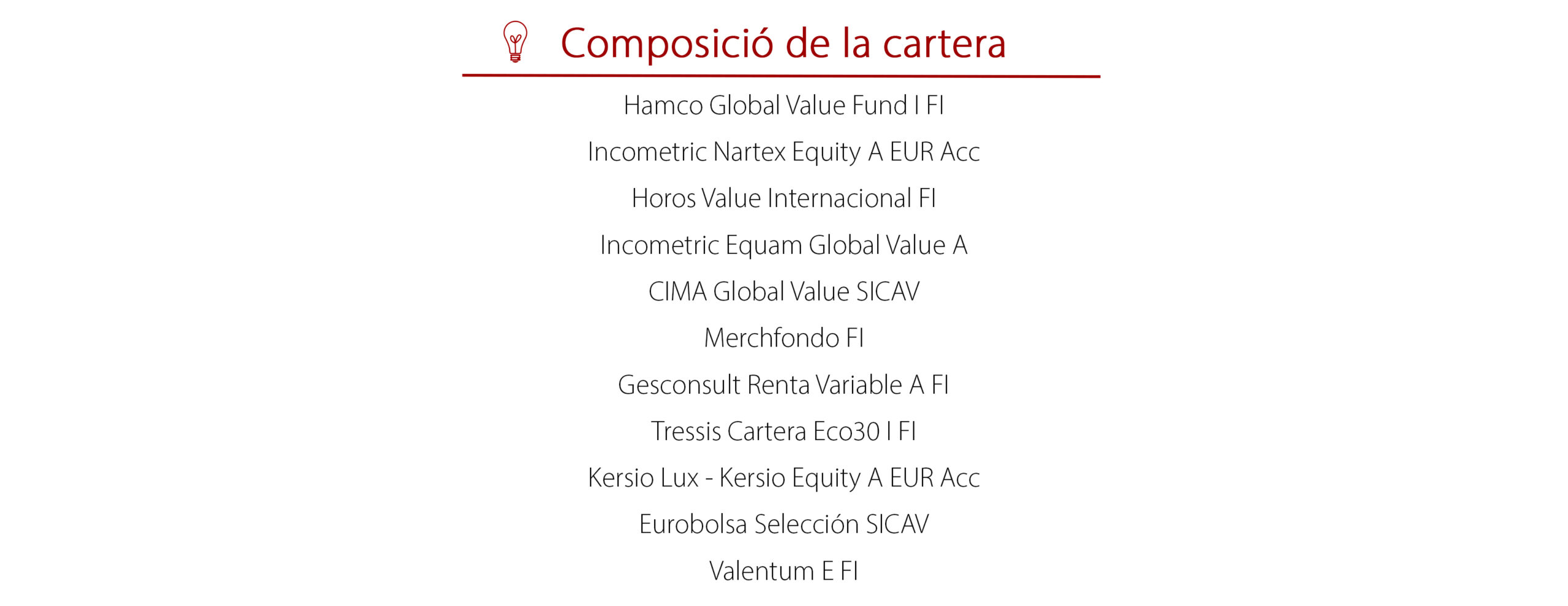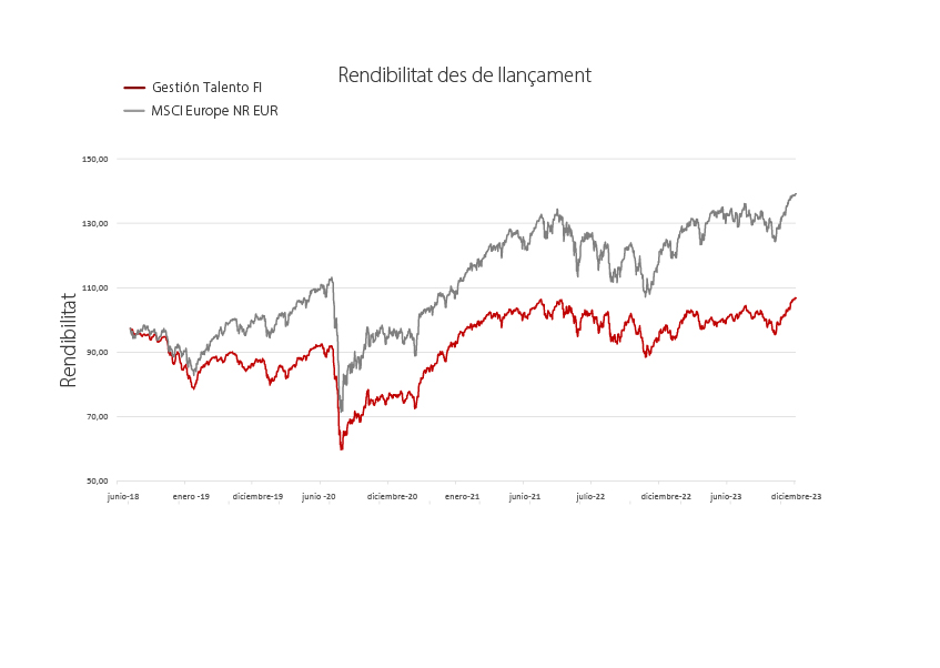 La cartera de Gestión Talento FI està composta per un 60% de Fons d’Inversió i un 40% de SICAVs, onl’alineació d’interessos amb els gestors sigui molt elevada. L’horitzó temporal recomanat per a aquest fons és de 5 anys.