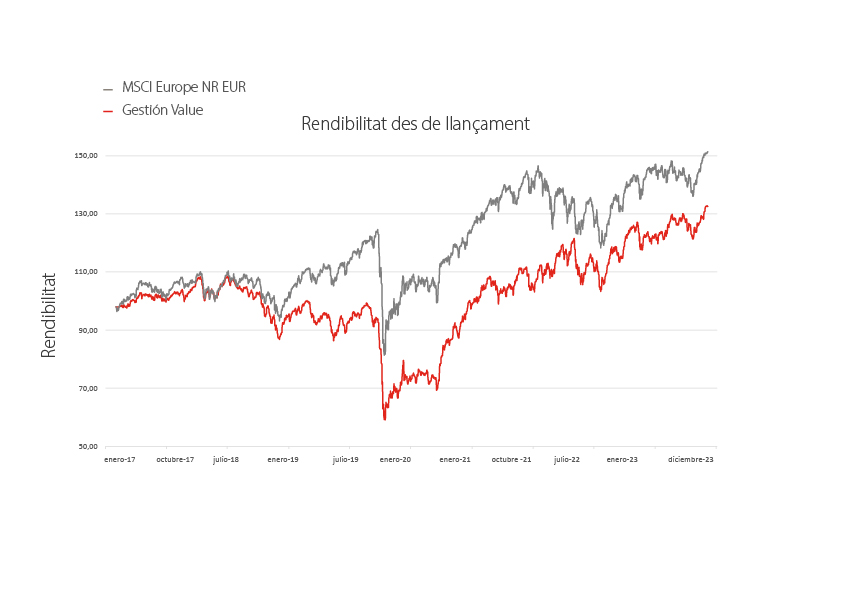 El model de gestió Value, té com a objectiu l’obtenció de rendibilitats satisfactòries i consistents al llarg del temps. Per a aconseguir-ho, Gestión Value FI inverteix en companyies infravalorades pel mercat i que tenen un alt potencial de revaloració. També pot invertir en fons que tinguin aquest tipus de gestió.